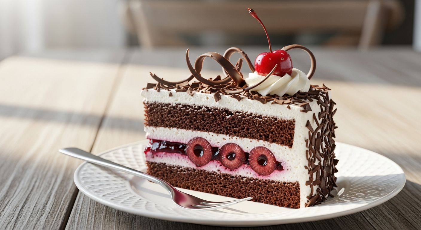 A2: Authenticity lies in tradition.It starts with a chocolate sponge cake made using cocoa, not just a plain chocolate cake.Then comes the kirschwasser – the clear cherry brandy from Germany’s Black Forest region – which soaks the cake layers for depth and moisture. Fresh Morello cherries or a good-quality sour cherry filling are essential,layered generously with lightly sweetened whipped cream. It’s this precise balance that defines the true Black Forest Cake experience.